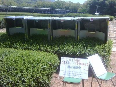 ん?何のこと?よく読んでみると、要は光の波長に焦点をあて、いったいどのタイプの光がお茶の味に貢献しているか、という研究をされているようです。お茶は覆いをして光合成をとめると旨み成分テアニンを蓄積して甘くなるという性質があり、畑を黒い科学繊維で被覆する技術がありますが、最近は白い被覆資材(早く芽を出すために行われる)や光を反射する素材で覆い下の温度が上がらないようにするものなど色々とあります。