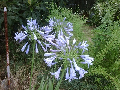 上から「メドウセージ」「ホタルブクロ」「アガバンサス」「紫陽花」「クチナシ」と東西の草花が咲き乱れています。