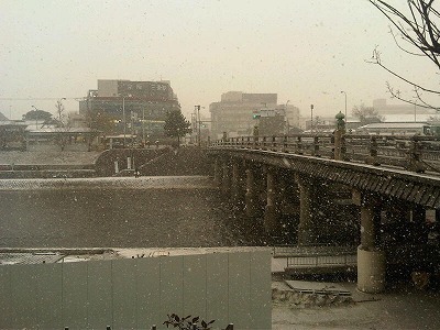 娘と出掛けた京都市内、三条大橋もすっかり雪景色です。自園茶畑も珍しく雪景色です。