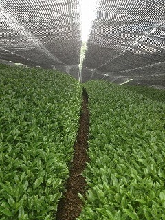 しかし、本年はもうすでに5度目となってしまいました。春先からの天候不順が原因で製造がバラバラとなっています。品種の順番にも乱れはありますが、毎年市場に上場されてくる本来の「パターン」から外れ、不規則な上場が続いているからです。個別の畑やその時製造されている茶の品質を観るというよりは、畑を歩き、農家とお話をして全体のイメージ像をつかむことが主たる目的です。しかし、写真の覆い下の畑を観て安堵しました。この農家は初取引の煎茶から一貫して優秀な茶を上場してくれる農家。その畑を観れば、どんなに不順であっても、こんなすばらしいさみどりの二番茶を育てています。