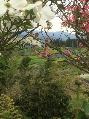 そんな入札の帰り、思い立って和束町の契約農家を訪れました。工場を訪ねるとご夫婦で極ミル芽のヤブキタを捌いて製茶に掛かられるところ。庭先には牡丹の花が咲きはじめ、美しく咲いたハナミズキの向こうには和束の茶畑が美しく広がっています。いつもと違う気候に少し戸惑っておられた今茶期の製造ですが、蒸し器からはすばらしい蒸し葉の香りが立ち込めていて、安心して、次の農家さんへと向かいました。