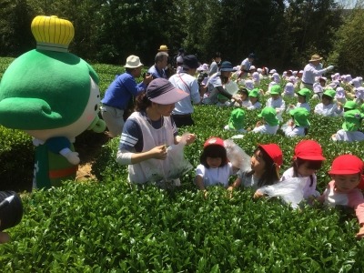 120人を超える園児さん達をお迎えして、恒例の茶摘み大会を開催しました。