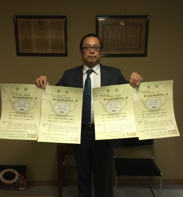 色々なお褒めの賞をいただいてまいりました、今回の受賞を新たなな励みに、より美味しいお茶を